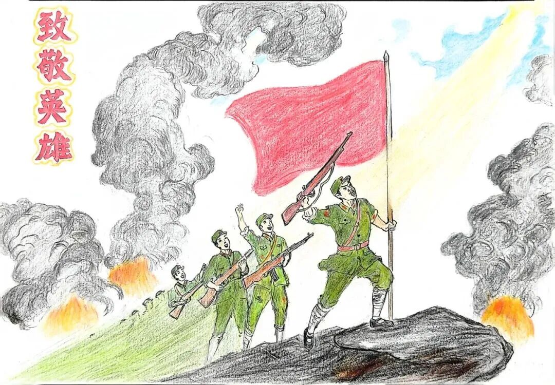 1、历史场景再现类: 孩子们通过查阅资料、聆听故事,用画笔再现了“卢沟桥事变”、“地道战”、“飞夺泸定桥”等经典历史瞬间。虽然笔法稚嫩,但画面中蕴含的紧张氛围与英雄气概却感人至深。