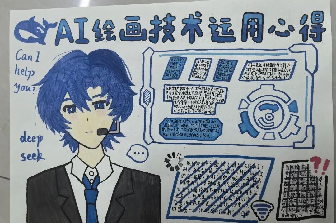 AI绘画技术运用”手抄报比赛。本次比赛以“科技赋能艺术,创意描绘生活”为主题,吸引了各年级数百名学生踊跃参与,同学们以独特的视角和多元的创作手法,呈现了一场科技与美学碰撞的视觉盛宴。
