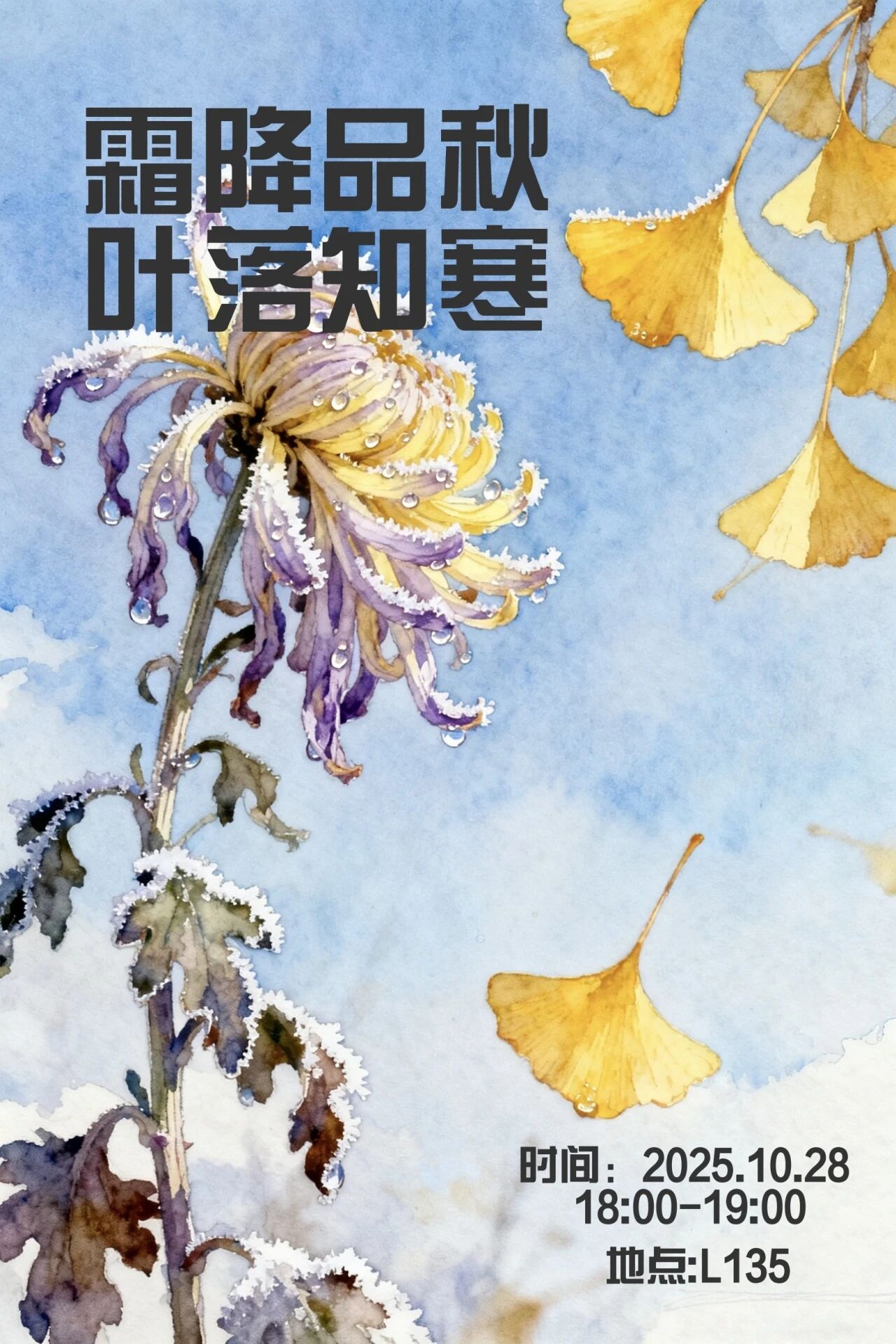 当画笔收起,画纸上的霜花、柿子与秋叶仍鲜活如初;当活动结束,参与者眼中的笑意与手中的作品,成了秋末最温暖的纪念。10月28日18:00-19:00,由吉利学院艺术设计学院团总支学生会主办并承办的霜降主题绘画活动圆满落幕,这场以色彩定格节气的创作,让霜降的自然之美与文化韵味,永远留在了画纸与心间。