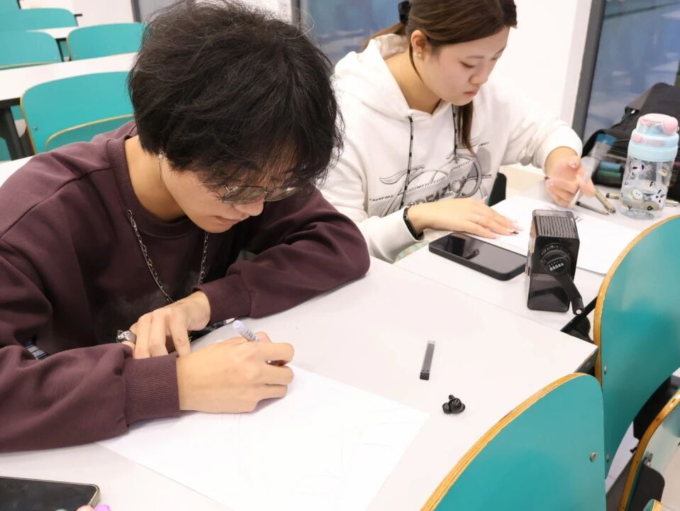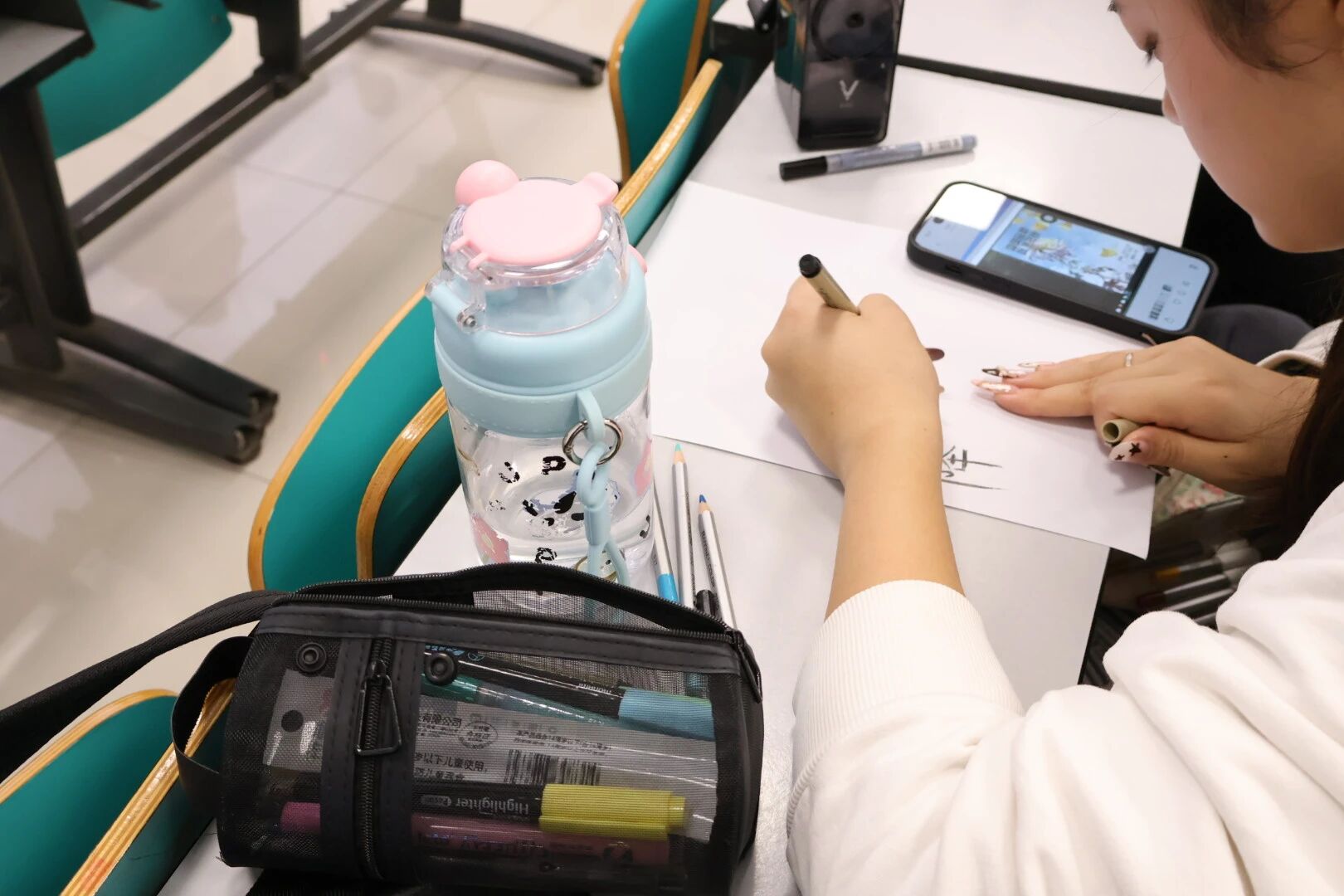 过程中,成员们时而交流裁剪技巧,时而讨论配色方案,不仅拉近了彼此距离,更让寝室凝聚力在协作中悄然升温。从勾勒线条到填充色彩,从专注创作到分享交流,这场绘画活动不仅让大家用艺术形式重拾霜降节气的自然意趣与文化内涵,更在笔墨互动中传递了秋日温暖。