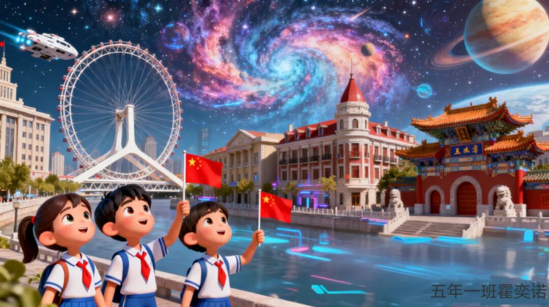 比赛自启动以来,得到了全校学生的热烈响应。孩子们围绕“未来天津”主题,大胆融入宇宙飞船、智能城市、星际枢纽、量子交通等科技元素——有的画作中,天津之眼与太空空间站隔空相望,海河之上穿梭着磁悬浮游船。