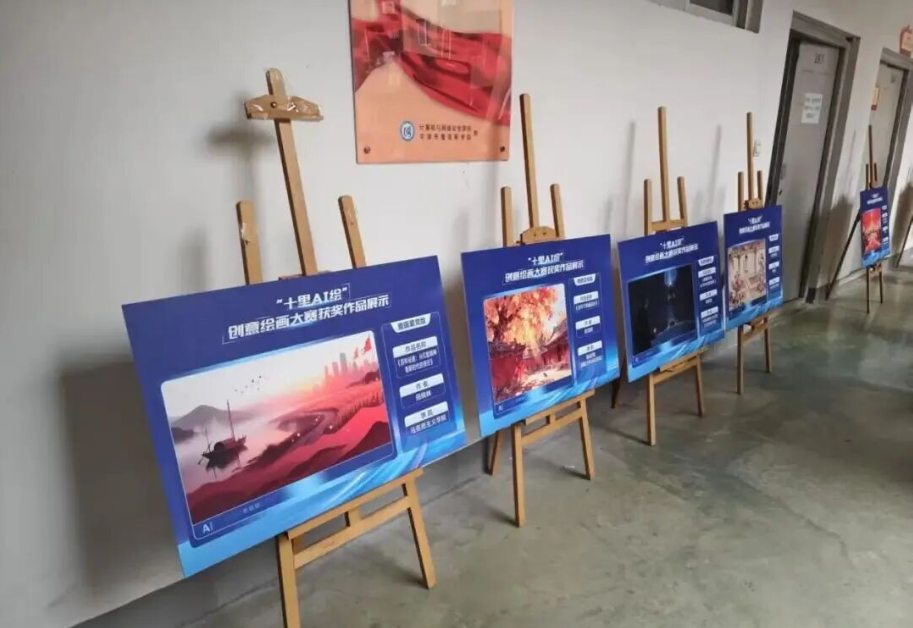 “十里 AI 绘”创意绘画大赛参赛作品,现已全部以实体展板形式亮相: