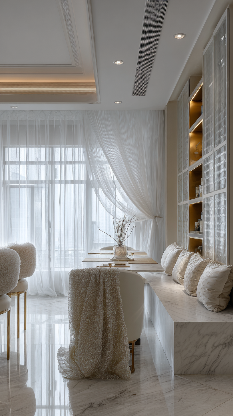一顶视图的桌面设置背景图片的产品模型与一个复杂的现代客厅自然白色和米色粉色主题,逼真3 ds Max电晕渲染,以一个非常干净的白色咖啡桌的特写镜头一本书在上面,一个花瓶的柔和的粉色干蒲苇和简约的装饰,柔和的自然光线流从一个窗口与微妙的阴影,一个现代台灯白色阴影,超细节材质纹理,电影照明,8k分辨率,超逼真,