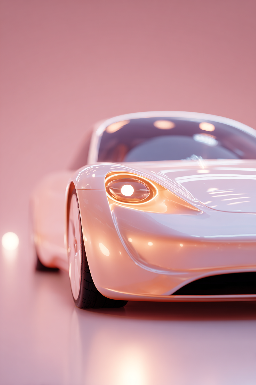 皮克斯风格的动画概念电动车,最小的面部特征,前灯暗示平静的人物情感,未来主义的车辆设计,干净的空气动力学车身线条,柔和的车身内部发光能量,平衡明亮的调色板,柔和的全局照明,高品质的专业3D概念艺术,动画设计可视化风格,乐观的未来主义情绪,图像逐渐向左上角消退,柔和的大气消退,左上角区域融入光线,微妙的小插图,不对称的构图,简单的中性背景,没有文字