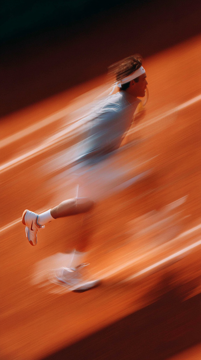 高端运动品牌的品牌形象,网球主题,以严谨的构图和清晰的艺术指导捕捉电影般的高性能瞬间,专业运动员在运动中打网球,优雅的简约设计语言,品牌一致的调色板,柔和的镜头光晕发光的自然光,超细节的逼真纹理,精致的对比和色调和谐,强烈的运动感和焦点感,高级编辑运动美学,现代2025视觉风格,标志性和充满情感的氛围