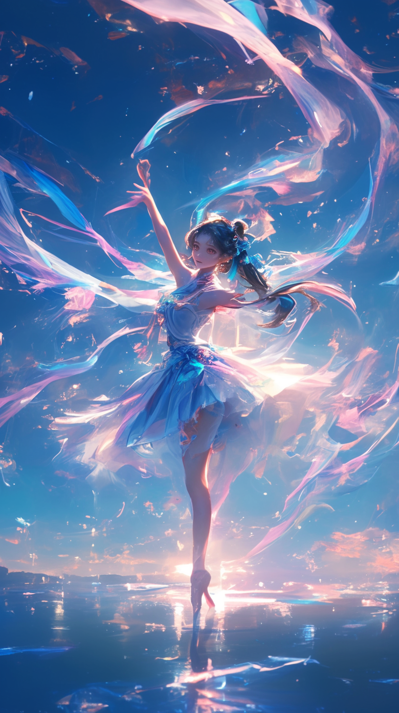 MJ中文版绘画提示词:二次元插画风,概念艺术级画面,3D立体国风,CG渲染质感;角色为飞天舞者少女,精致五官,精致妆容,夸张扭曲人物轮廓,画面张力十足,安静温柔。四肢修长,纤细腿部。运用大张力动态构图。肌肤水润光泽,冷白皮,细腻陶瓷水嫩肌肤、肤色均匀自然,动作自然,通透长发与飘带大幅甩出弧线,姿势为半旋身抬手舒展;轻薄层叠短裙礼装轮廓,披帛与飘带丰富;场景为云海天穹与高空光雾层,云层像发光薄纱铺满,微粒与光点粒子极密;拍摄角度为高机位俯拍广角,画面铺满氛围色彩;整体暖金圣辉氛围色调。极致爆亮刺眼发光感,BLINDING BRIGHTNESS,WHITE HOT HIGHLIGHTS,EXTREME LUMINOUS ATMOSPHERE,strongest bloom effect,INTENSE LENS FLARE,massive halo glow,light leak,glare streaks,超强体积光瀑布多束直射,光源边缘发光扩散占据大面积画幅,满屏星砂光粒子与高光点阵,画面高键曝光大幅提升但脸部五官仍清晰可读,暗部只保留很少层次不死黑,整体通透发光不发灰 反向提示词:低画质,模糊,畸形,五官崩坏,手部畸形,多根手指,缺手指,多余肢体,水印,文字,签名,丑化,多人,杂乱背景,过曝,死黑,线条生硬,平涂,低分辨率,噪点,马赛克,描边,线稿,黑色外轮廓线,卡通描边,硬边勾线 参数: