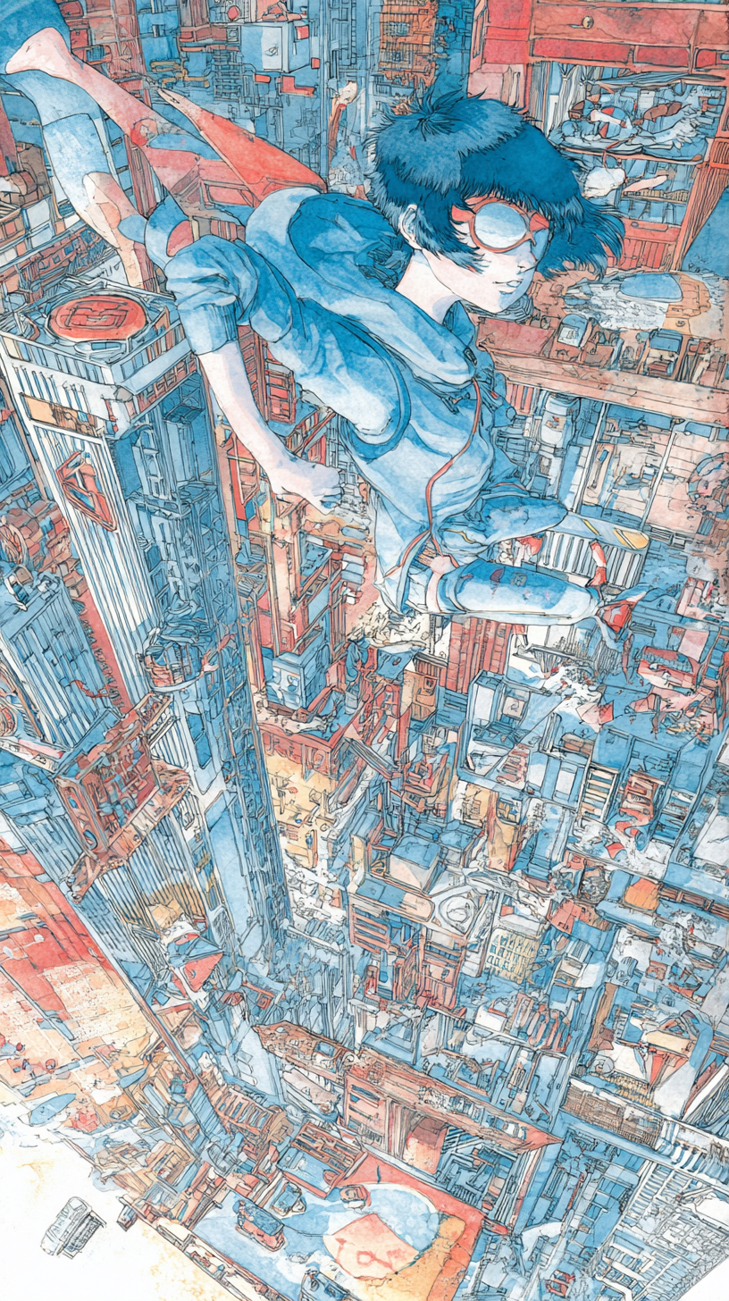 黑猫双曝光和多档拼贴。蒸汽朋克的城市。表现力漫画风格的水彩画,锐利的线条,日本传统的配色方案,漫画的关键视觉风格。