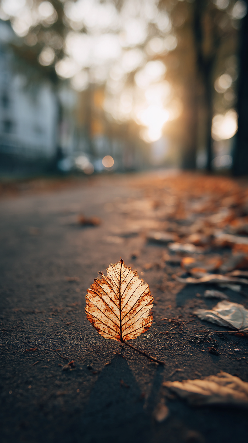 一片秋天的叶子,形状像一个优雅的人类舞者,慢慢地穿过森林的小路,手臂和腿由叶脉组成,在半空中表演着温柔的当代独舞。柔和的金色晚霞,浮尘,电影般的宏观写实,浅景深。动作缓慢,诗意,连续,以树叶落下的柔和鞠躬结束。超写实,魔幻现实主义,没有卡通,没有人脸。